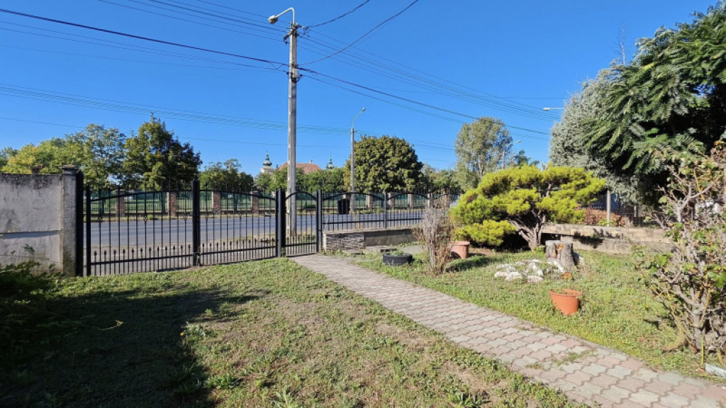 Konyha kerti rész is adott. Az udvar parkosított, térkövezett , kovácsolt vas kerítés utcafront felől. Minden közmű adott.