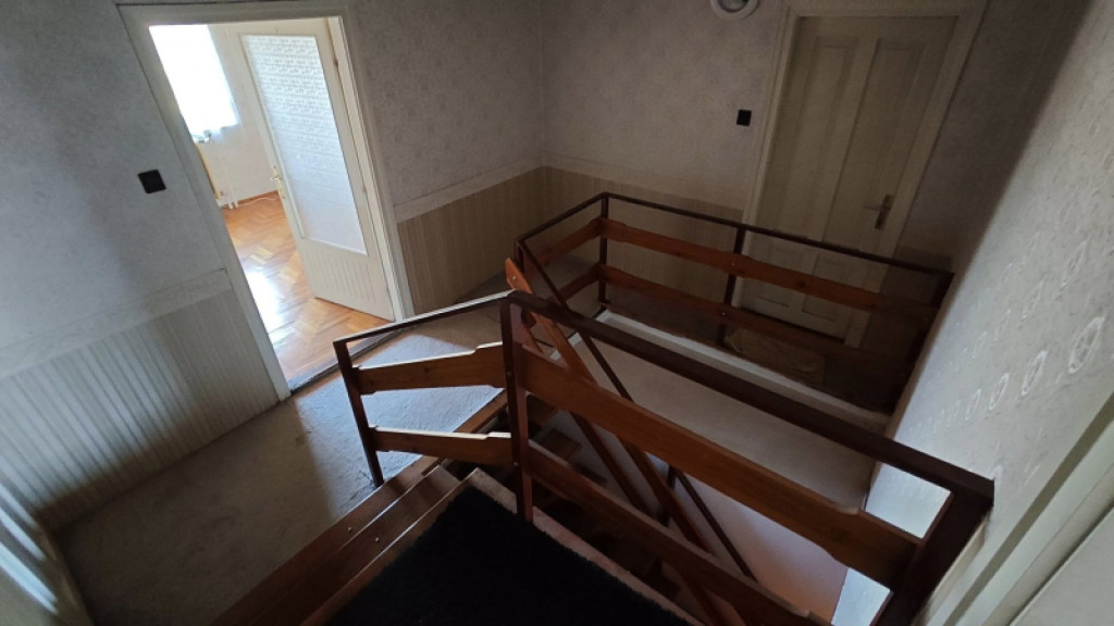 Ebédlő , konyha ,kamra fürdő wc-vel kiosztással ,illetve 3 háló az utca felőli oldalon , és a padlástérben 2 nagyobb méretű szoba adott.