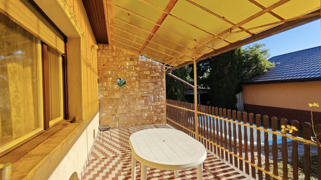 Jó beosztású , szerkezetileg stabil építmény.A központi fűtés , gázkazánról, illetve vegyes kazánról is müködtethető. A melegvizet boyler biztosítja.Nyílászárói fából készültek thermo üvegezéssel.Jó beosztású , ajánlom nagy családosoknak , vagy összeköltözőknek, akár több generációnak is.