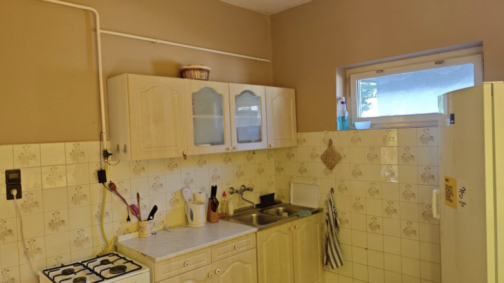 Ebédlő , konyha ,kamra fürdő wc-vel kiosztással ,illetve 3 háló az utca felőli oldalon , és a padlástérben 2 nagyobb méretű szoba adott.