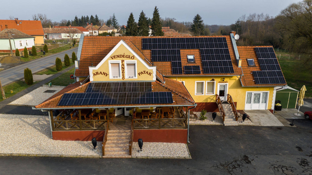 Az étteremhez tartozó mintegy 5 200 m²-es, teljes közműellátottságú terület (szennyvíz, gáz) lehetővé teszi a zavartalan működést és a jövőbeni fejlesztéseket. Az energiahatékonyságot 42 darab, összesen 16,4 kW teljesítményű napelem biztosítja – ez nemcsak korszerű megoldás, hanem hosszú távon is érezhető gazdasági előny.