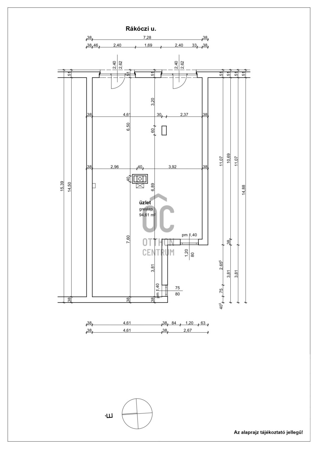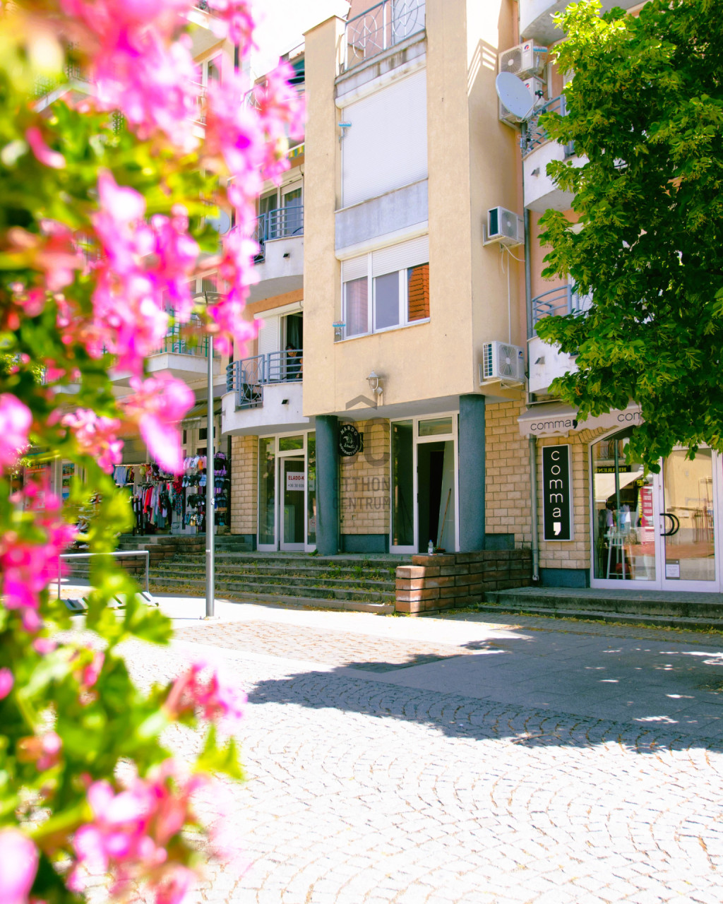 A szomszédos, szintén 46 m²-es üzlethelyiség ugyancsak eladó, amely igény esetén könnyedén egybenyitható. Mindkettő külön, vagy akár egyben lakás céljára is átalakítható.