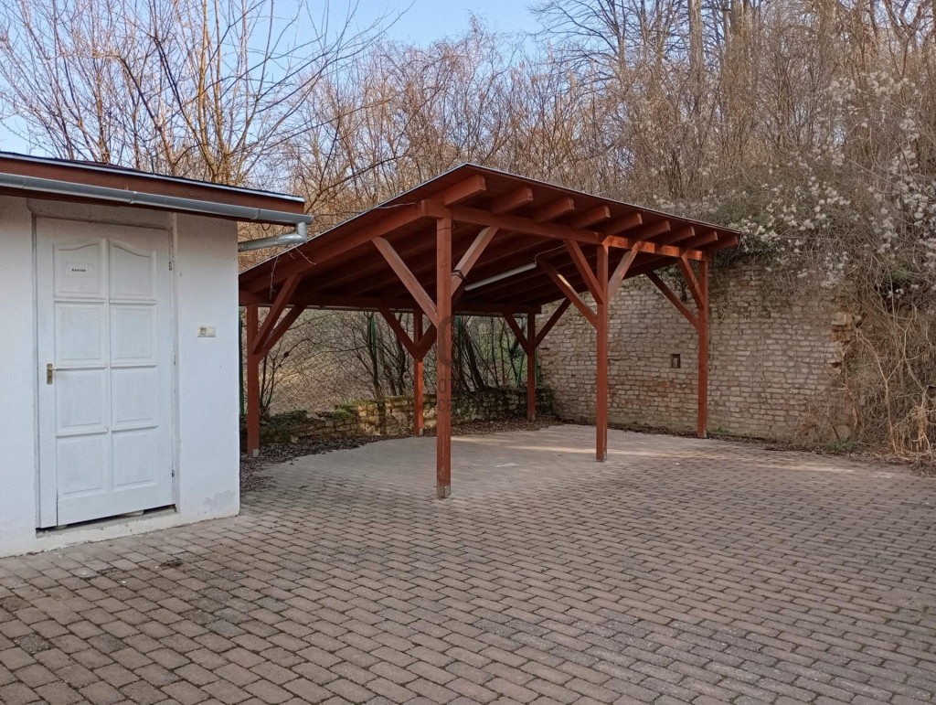 Az udvarban fedett beálló és nyitott parkoló is rendelkezésre áll.