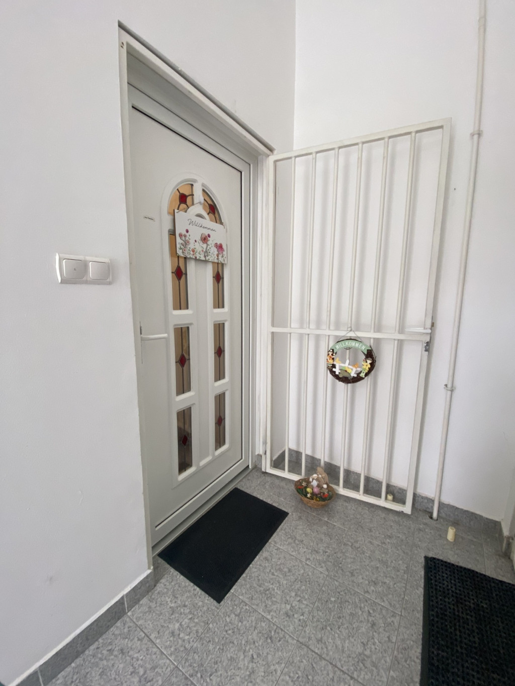Az udvar elektromos kapun keresztül közelíthető meg, lakásonként egy autó számára biztosított parkolóhely a kövezett parkolóban. A lakáshoz tartozik egy közös használatú pince is, melyben 4 négyzetmétel áll rendelkezésre lakásonként.