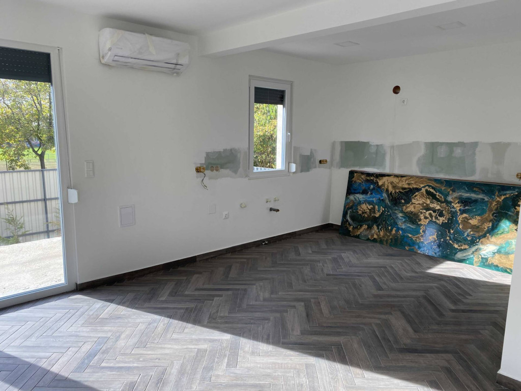 Az épület fűtési energiaellátását elektromos padlófűtés biztosítja. Földszinten előszoba, nappali-étkező, konyha, fürdőszoba, kamra; Tetőtérben 3 db hálószoba, fürdőszoba, gardrób, közlekedő helyiség van.