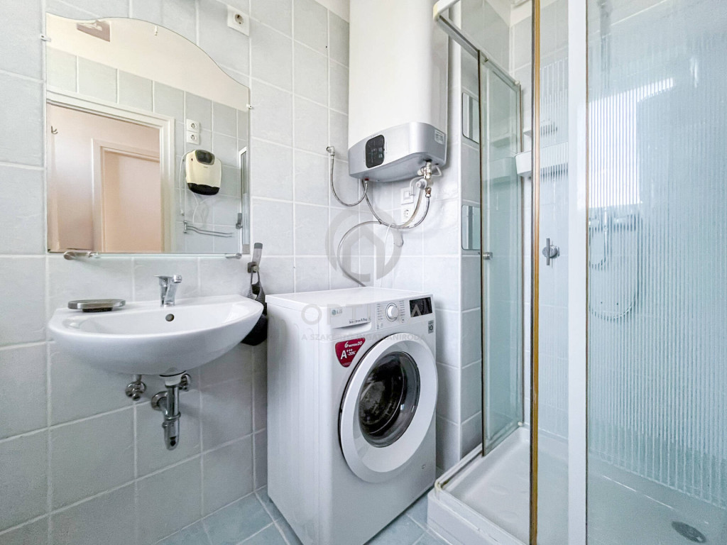 A lakás gépesített, modern konyhával (mosogatógéppel), zuhanyzós fürdőszobával rendelkezik, továbbá egy saját, 4 m²-es tároló is tartozik hozzá. Az alacsony fenntartási költségeket az éjszakai áram használata is támogatja.