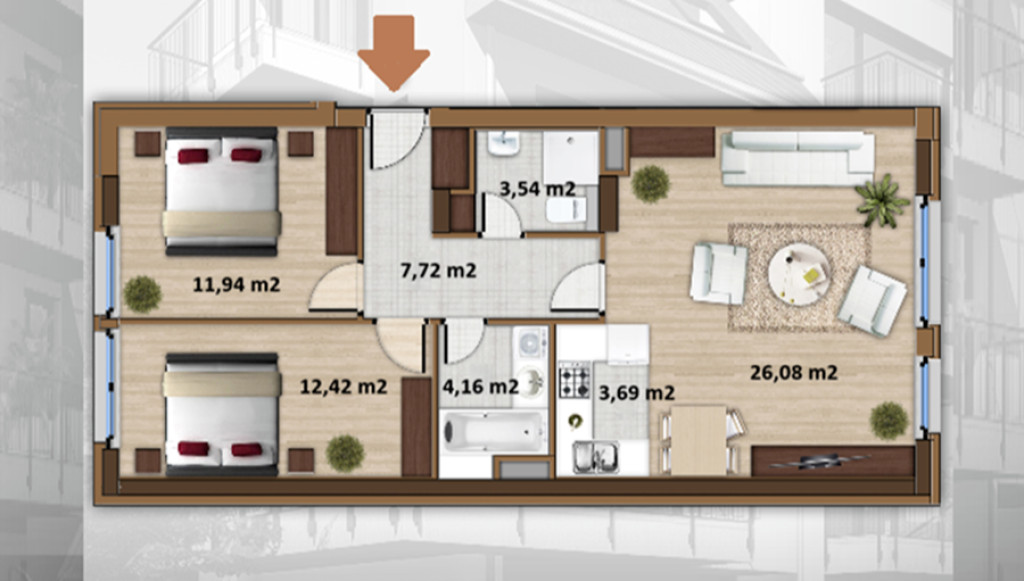 • Összes alapterület: 72 m²