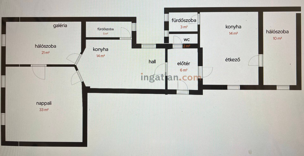 Jelenleg két lakás van kialakítva az ingatlanon belül, amelyek egy közös előtérből közelíthetőek meg. Balra indulva a nagyobb, 70m2-es, nappali +1 hálós lakórészt érjük el, melyben kádas fürdőszoba kapott helyet. Jobbra pedig a kisebb, 1 hálós lakrész található zuhanyzós fürdőszobával. A lakás teljeskörű felújításon esett át, nyílászárói korszerűek, hő- és hangszigeteltek. Nyáron a kellemes hőmérsékletről klíma gondoskodik.