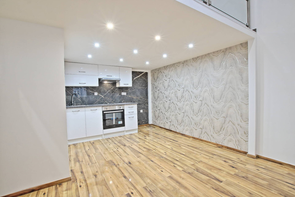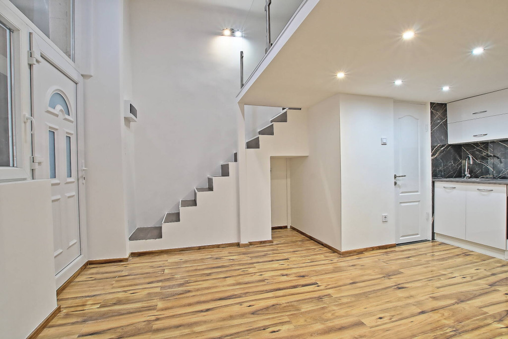 Az amerikai konyhás nappali 16 m2-es, a fürdőszoba 3 m2-es, a másik szoba 14 m2 alapterületű. A nappaliban egy 13 m2-es galéria növeli az életteret.
