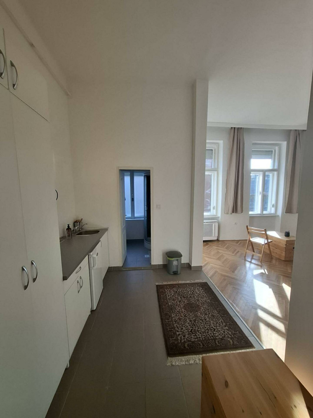 A lakás csendes, parkra néző ablakokkal rendelkezik.