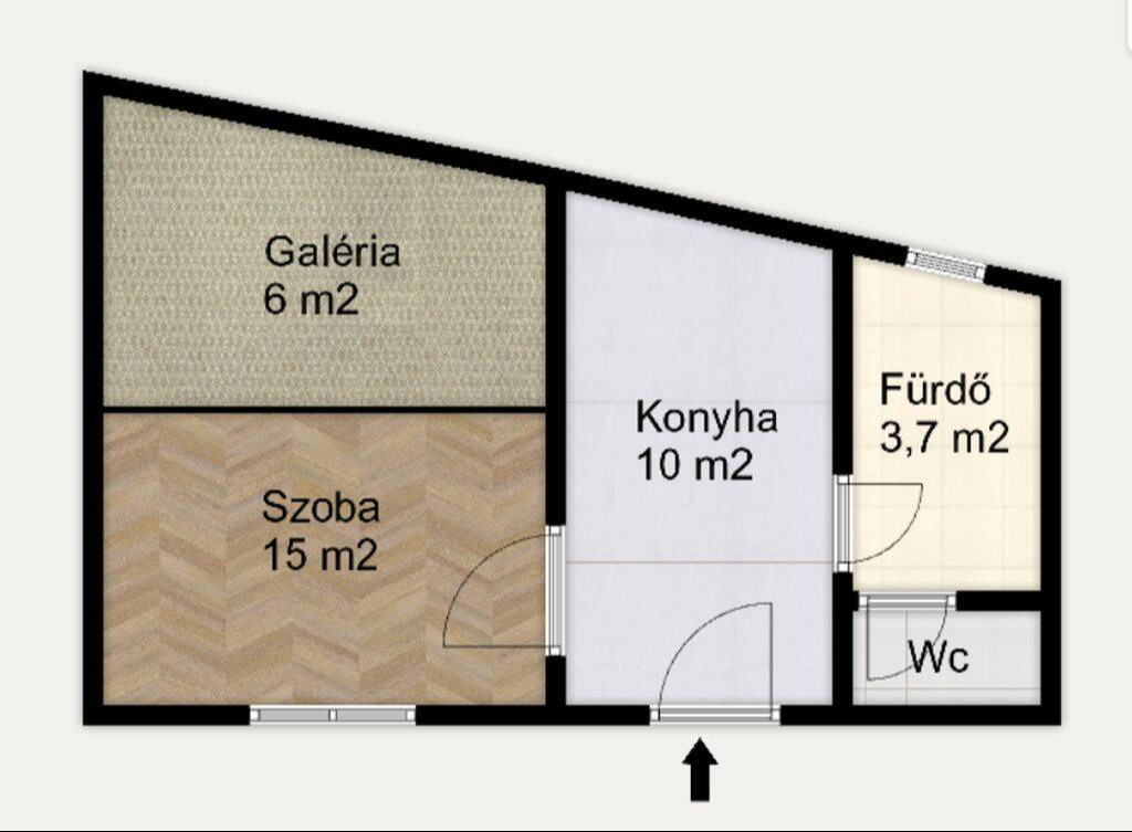 - 1 szoba, étkezős konyha, szép fürdőszoba