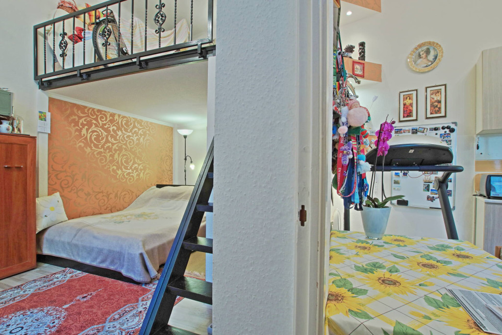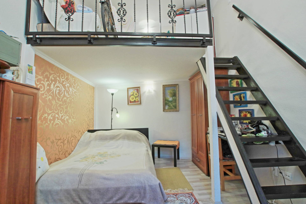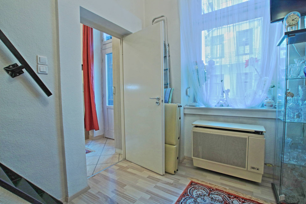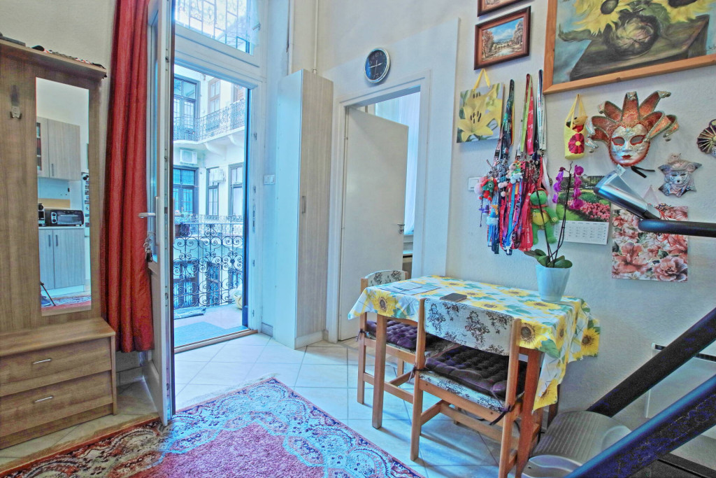 Az ingatlan igazi belvárosi elhelyezkedése ellenére, udvari fekvésének köszönhetően nagyon csendes, azonban a második emeleten található így a délelőtti órákban szépen besüt a nap is. Tágas szobájának nagy belmagasságát kihasználva egy fém szerkezetű, 165 cm-es állómagasságú galériát építettek megnövelve ezzel a rendelkezésre álló teret. A néhány évvel ezelőtti felújítás során nemcsak a nyílászárókat, a vezetékeket és a burkolatokat cserélték ki, de az étkezős konyhát és a fürdőszobát is átalakították. Az ízléses fürdőben egyedileg épített, üvegfalú zuhanyozót készítettek és a toalettet egy külön kis helyiségben választották le.