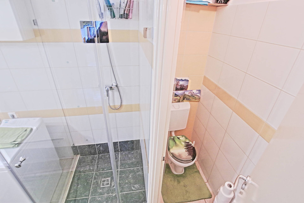- épített zuhanyzóval felszerelt, ízléses fürdőszoba