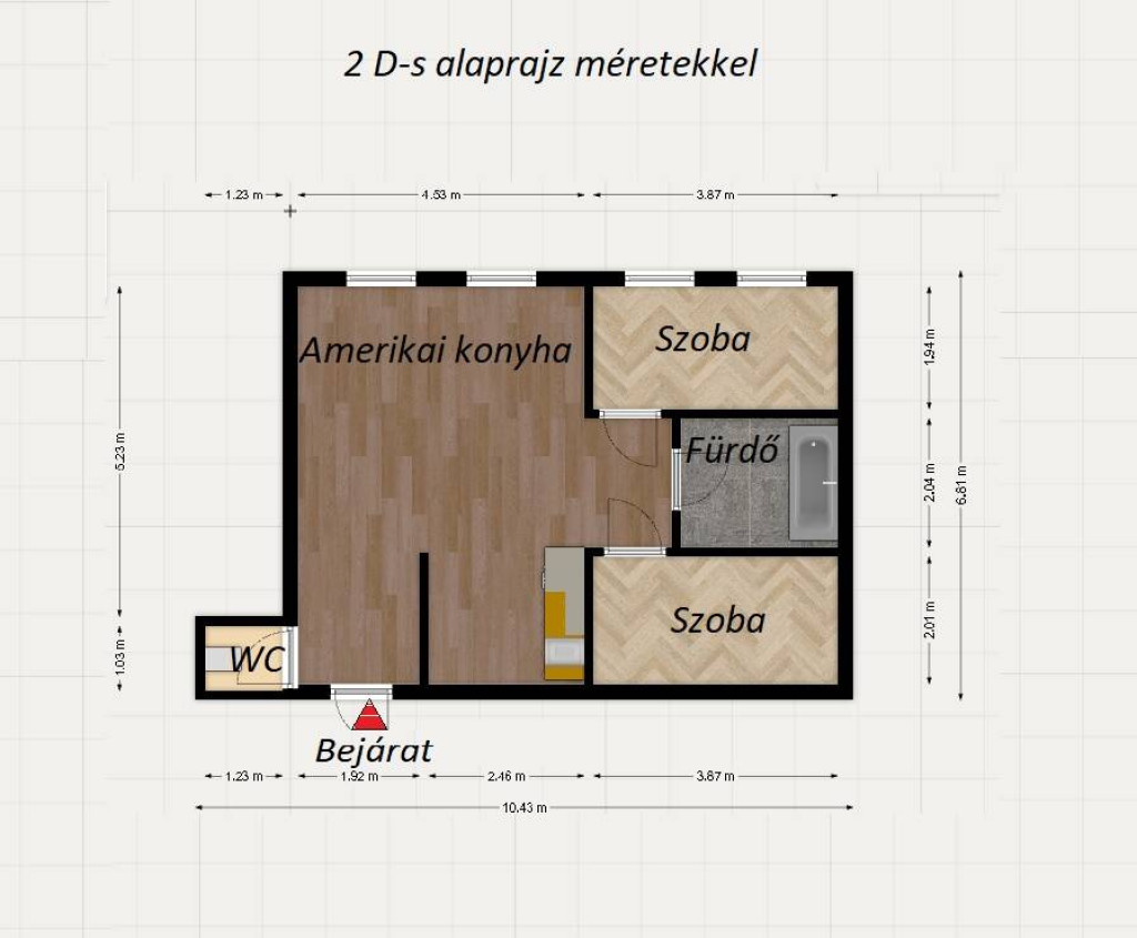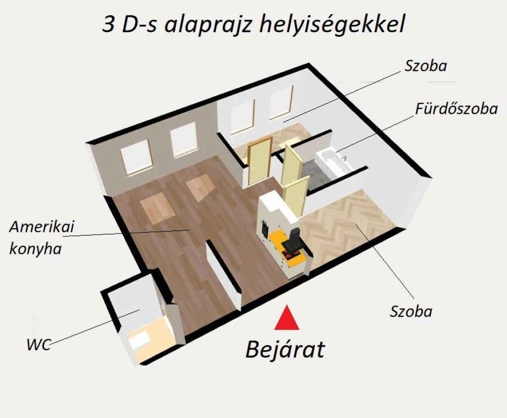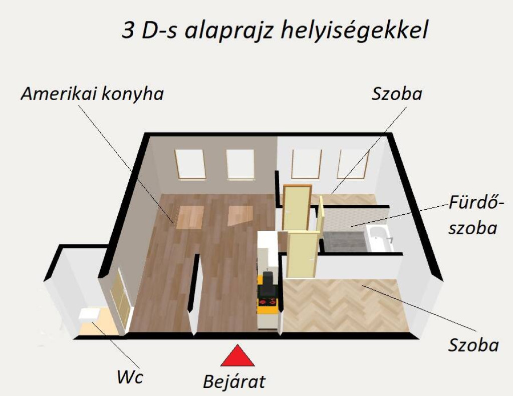 *2,5 szoba (2 tágas + 1 kisebb, külön nyíló)