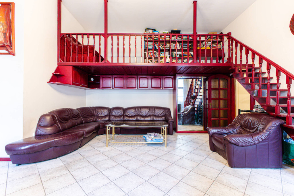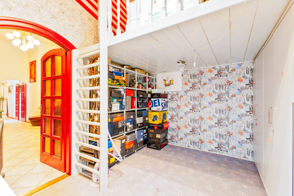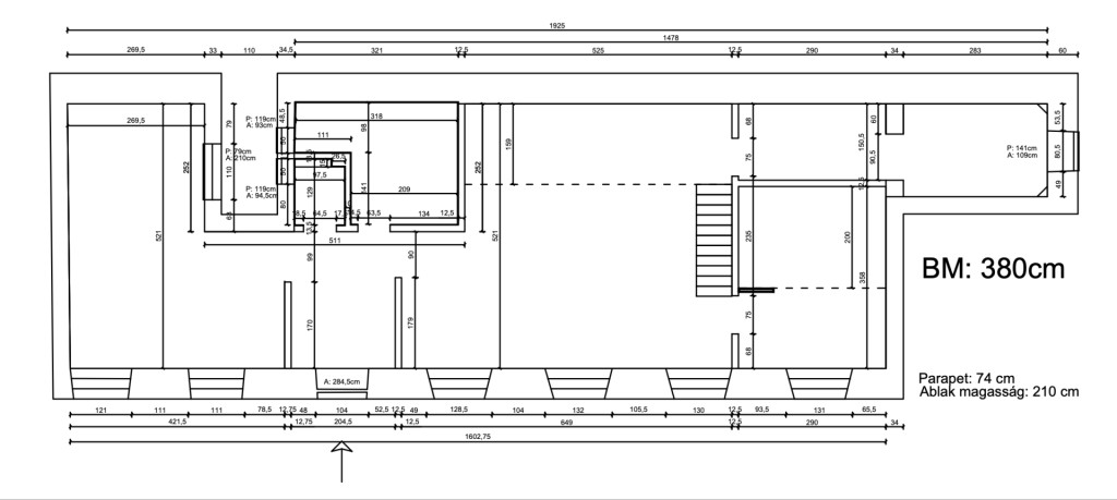 A belmagasság 380 cm, belső két szint, de inkább galéria kialakítására kiválóan alkalmas.