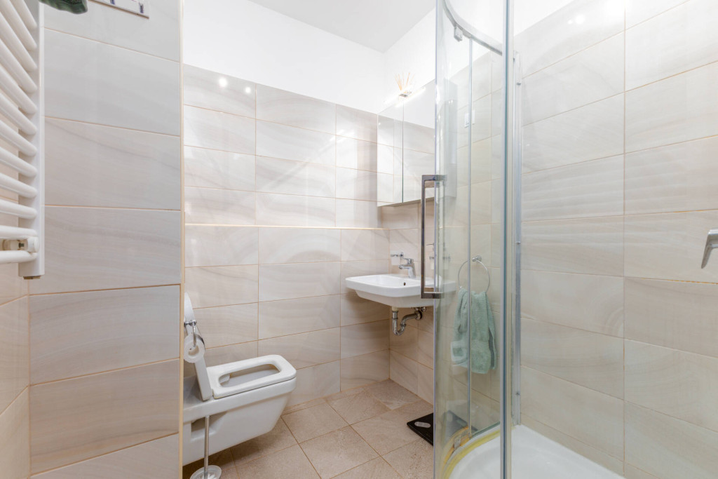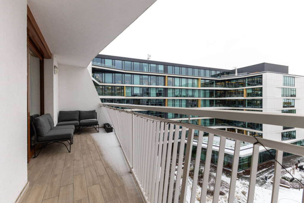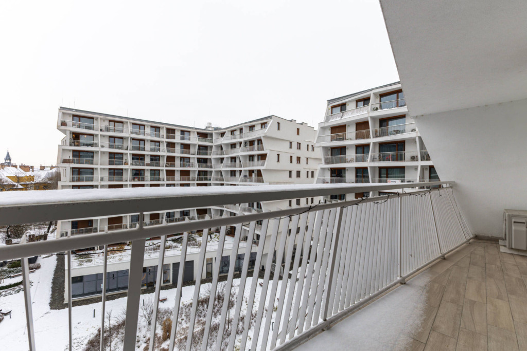 A lakás egy modern, liftes társasházban található, kulturált lakóközösséggel, rendezett közös terekkel, 24 órás portaszolgálattal és kamerarendszerrel.