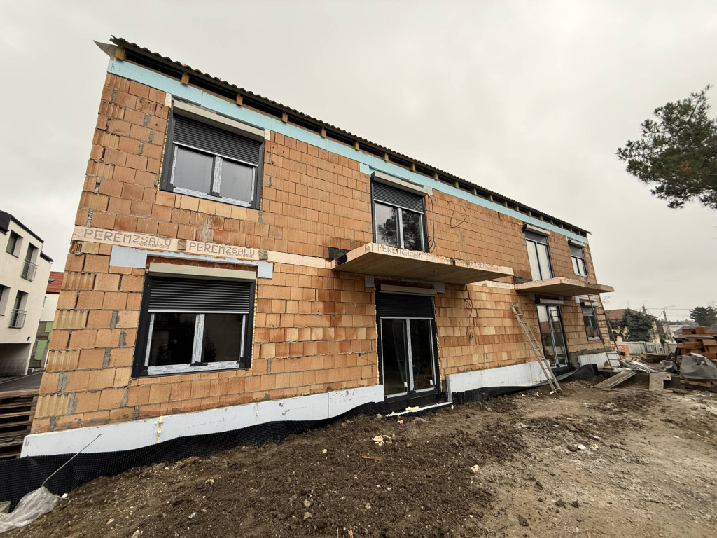 30-as Porotherm téglából épült a ház, 15 cm-es nikeccel szigetelést fog kapni. Lábazat 10cm xps. A lakások közötti hang gátló tégla.