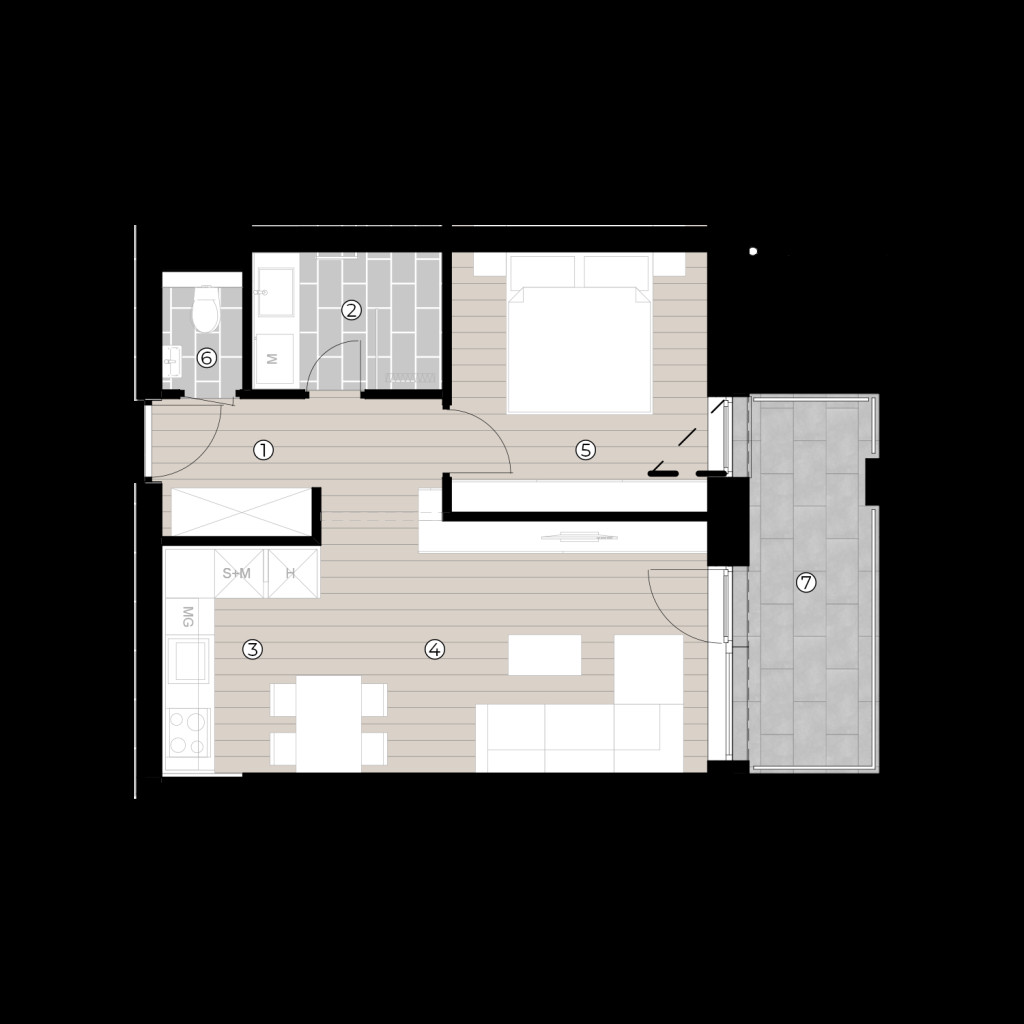 Az BL102 lakás a 1. emeleten található, 42,21 m2 területű és 7,4 m2 erkéllyel rendelkezik. Az ára 46.228.000 Ft.