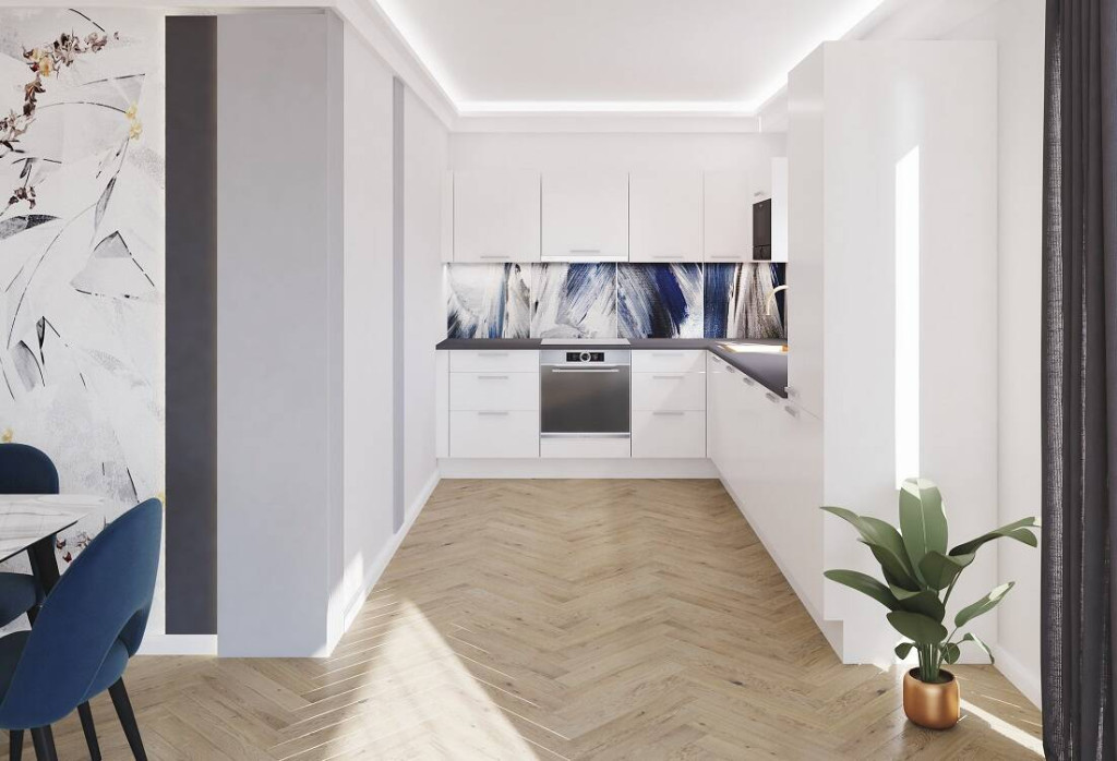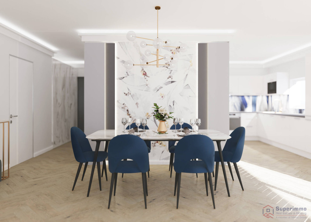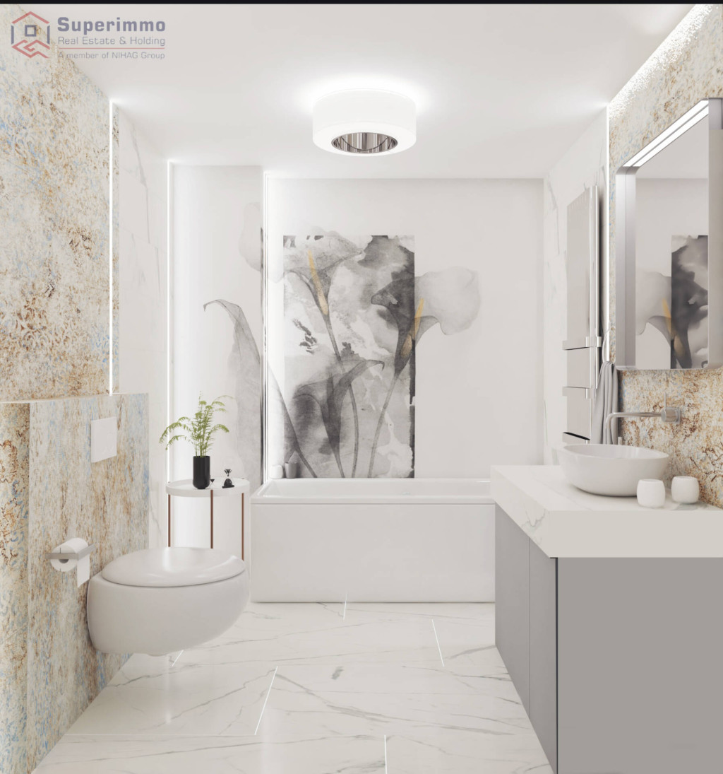 A helyiségek falai fehérre festettek, igény szerint színre festést, tapétázást meg lehet valósítani. A rejtett világítás előkészítése a teljes lakásban megtörtént.