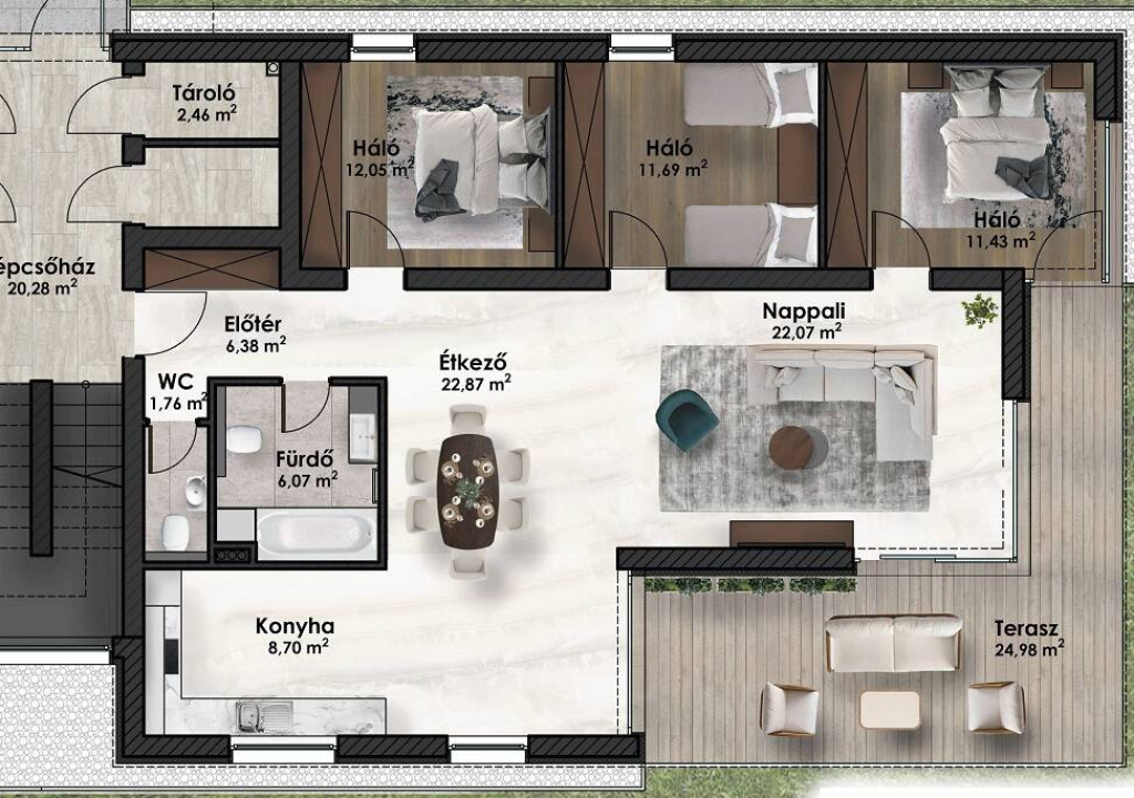 A vevők igényelhetik a teljes bebútorozást is. Ennek díja megbeszélés tárgyát képezi!