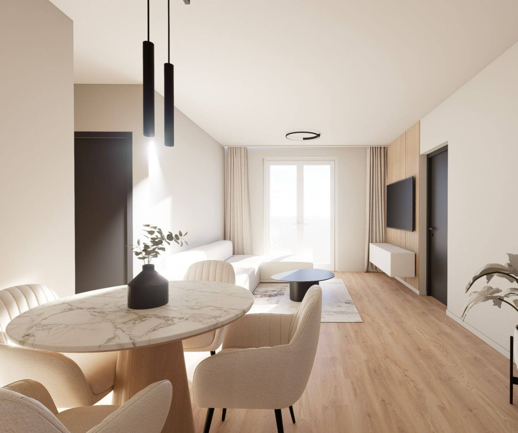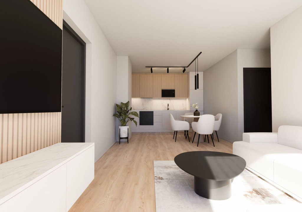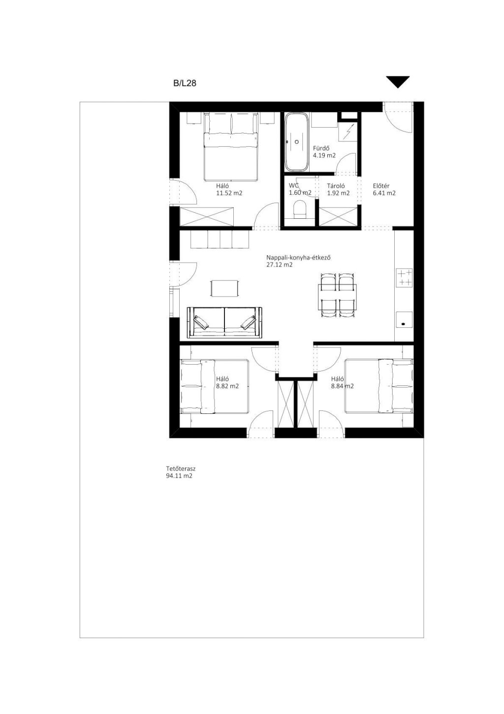 A lakás a B épület legfelső szintjén található, tágas amerikai konyhás nappalival, három hálószobával és egyedülállóan nagy, 94 m²-es terasszal, amely körbeöleli az egész otthont. A modern, világos terek és a prémium burkolatok a lakás minden részletében a minőséget képviselik.