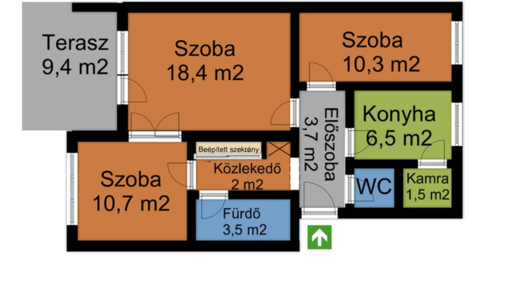 ➤ 2 szoba, nappali, konyha, kamra, fürdő, külön Wc, folyosó beépített szekrénnyel, ERKÉLY (alaprajzot lásd a fotók között), körbejárható térszerkezet.