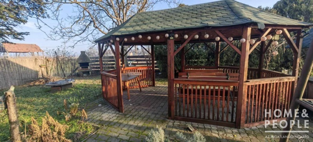 a lakóépület telekrésze körbekerített és parkosított, kerti kiülővel, sütögetővel,