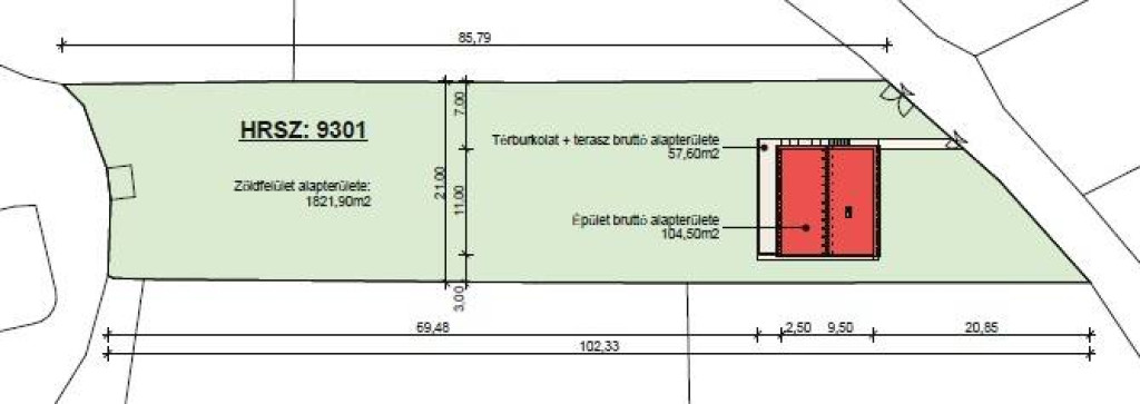 Tervezett bruttó beépített alapterület: 104,5m2