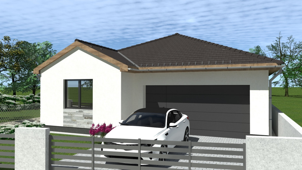 A telek megvásárlásával átadásra kerül egy 4 szobás, dupla garázsos ház teljes építési terve is, nyitott építési naplóval, így az építkezés azonnal elkezdhető. Igény szerint kivitelező vállalni tudja a felépítést is.