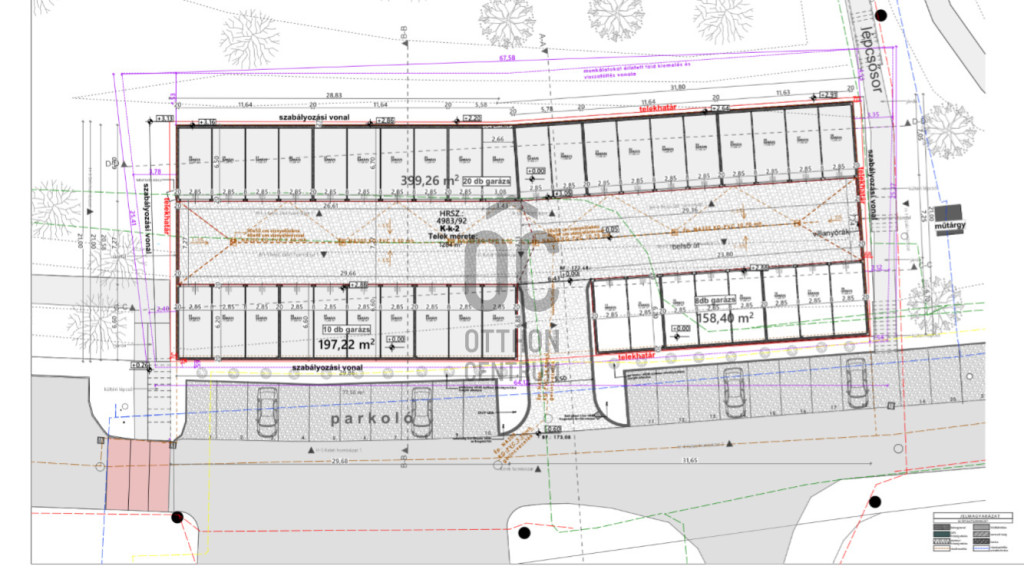 - Villamos hálózat: Nappali tarifás villamos energiaellátás: 1x32Amper/garázs. A garázsokban villamos alapszerelés kerül kialakításra, a gégecsövek a tartó szerkezetekben történő elhelyezésével. 3db 220V aljzat, 1db kapcsoló, 1db mennyezeti lámpa, a szerkezetbe süllyesztve, dobozhely kiállással,