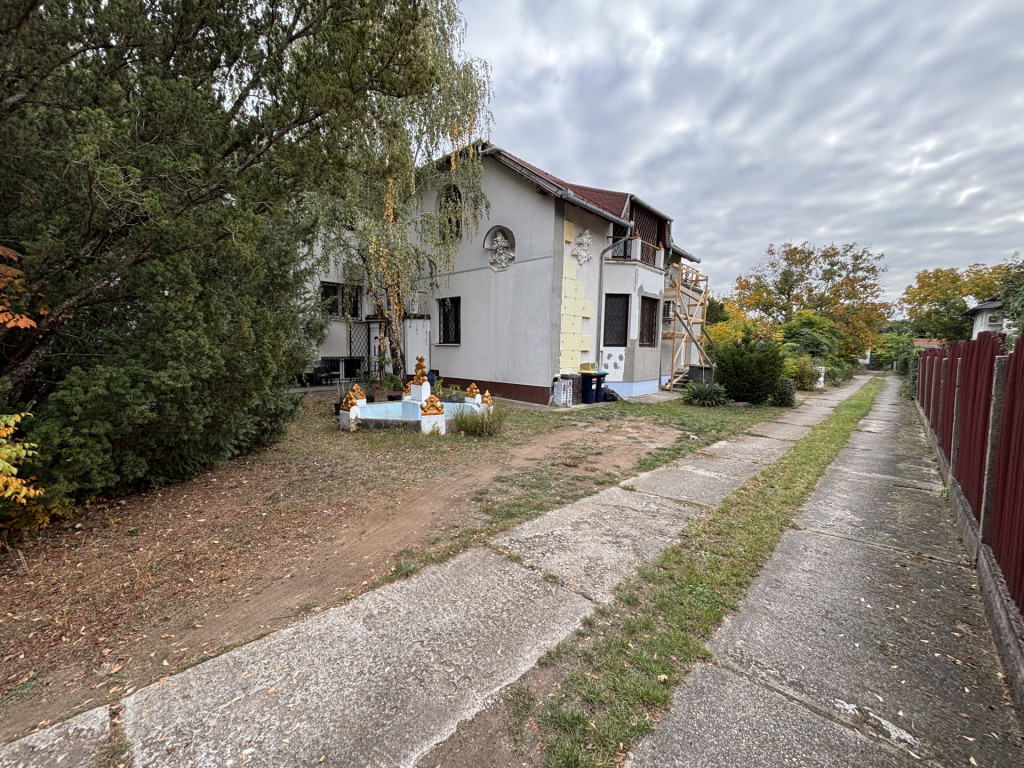 A telek utcafronti részén egy önálló családi ház található, a telek hátsó fele eladó, amin jelenleg egy műhely épület van, amit el kell bontani.