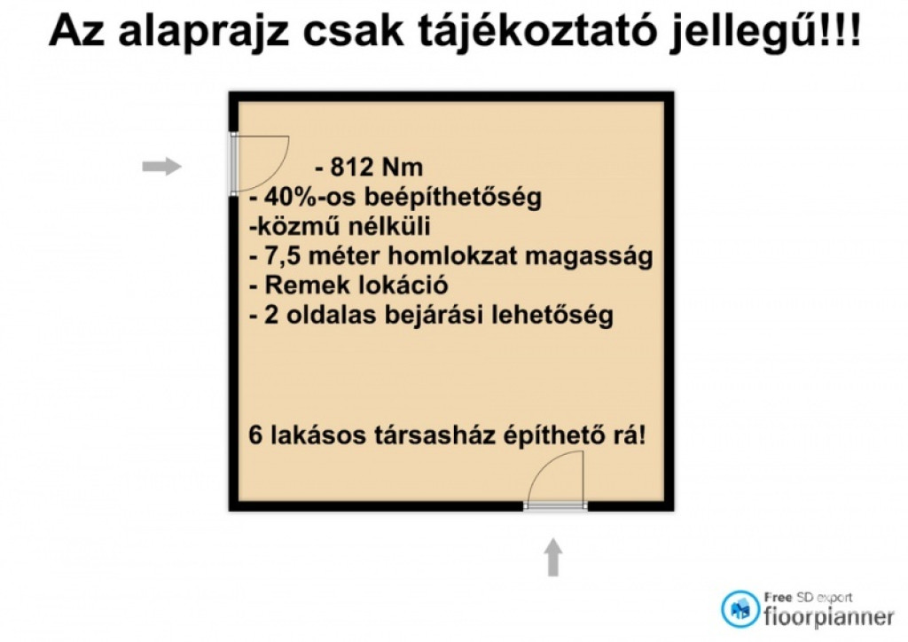 - 812nm a telek, 7.5 méter a homlokzat magasságra az engedély (földszint,1.emelet, tetőtér)- (6 lakásos társasház) kivitelezhető rá!