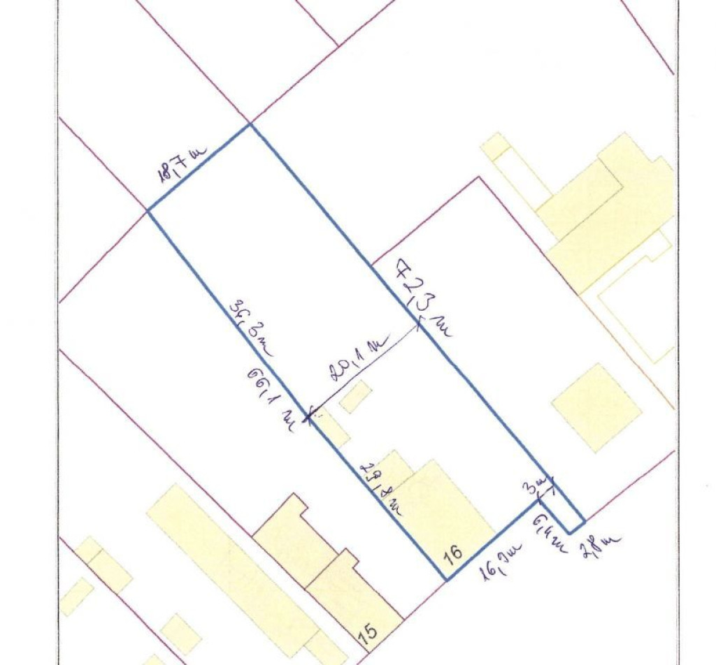 Az 1295 nm területű telek körbekerített, teljes közművel rendelkezik, rendezett utcában találhatóutca. A telek utcafrontja 18,7 méter, hossza 66 méter.