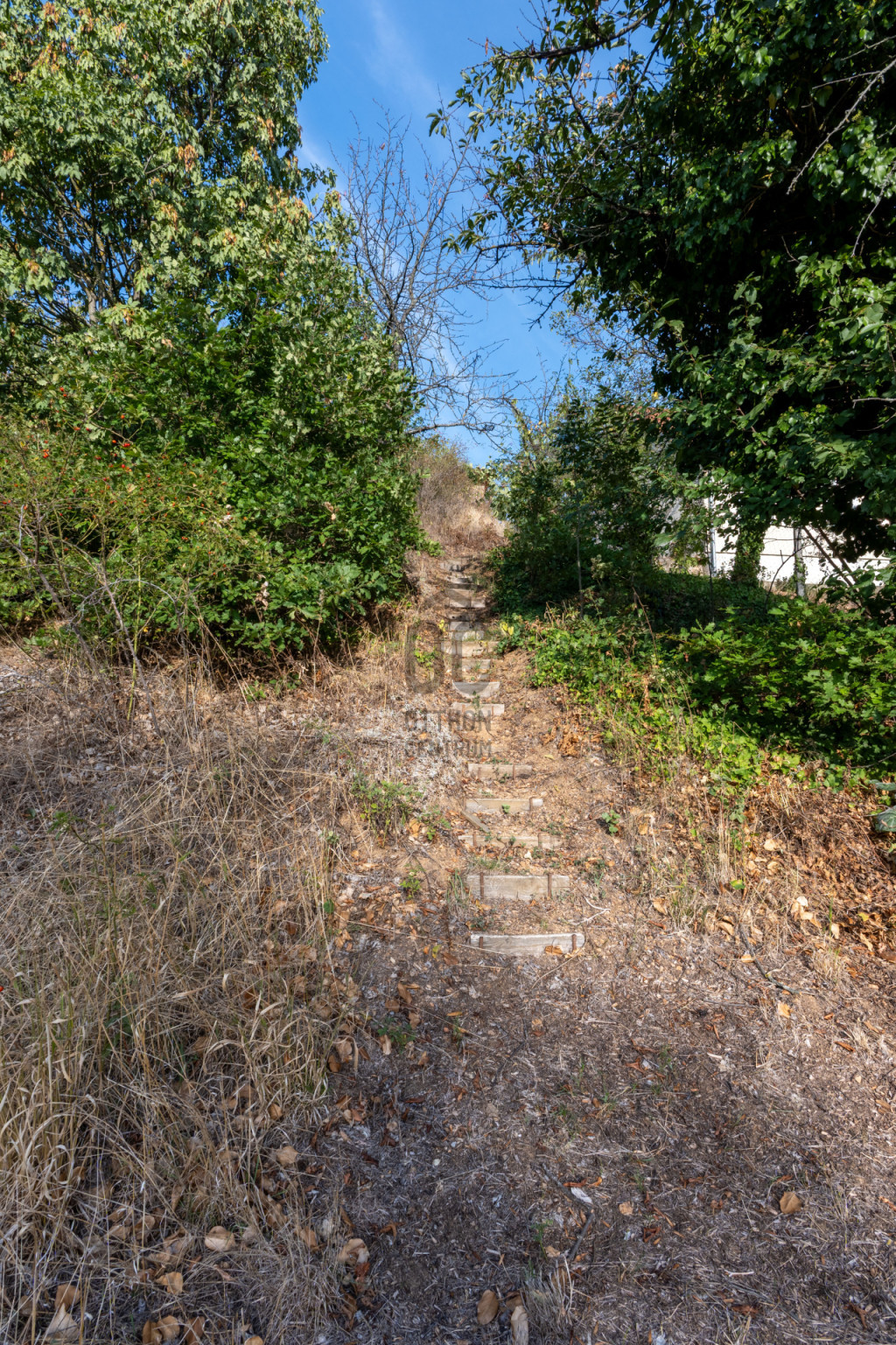 Az utca felőli részen sík a terület, beépítésre részben előkészített. A vízóra akna és a jelenlegi áramkiállás is itt található.