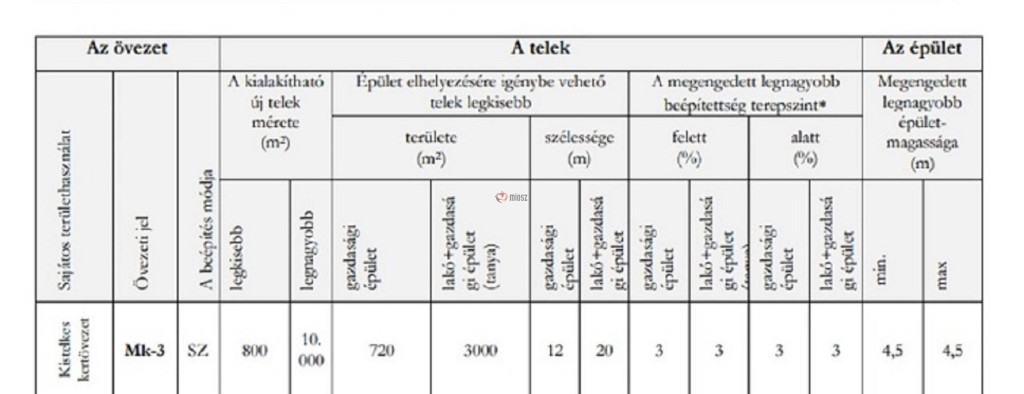 A terület Mk-3-as övezeti besorolású az erre vonatkozó rendelkezések a képek között található.