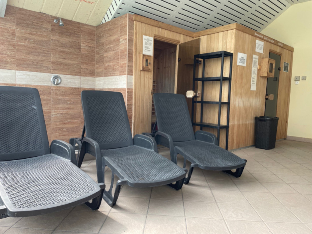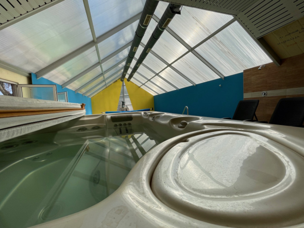 A ház sajátossága a 220 m2-es wellness 60m2-es fűthető uszodával, jacuzzival, szaunákkal felszerelt, mellette tágas közösségi térrel, sörsátorral, hangulatos kerthelyiséggel, játszótérrel.