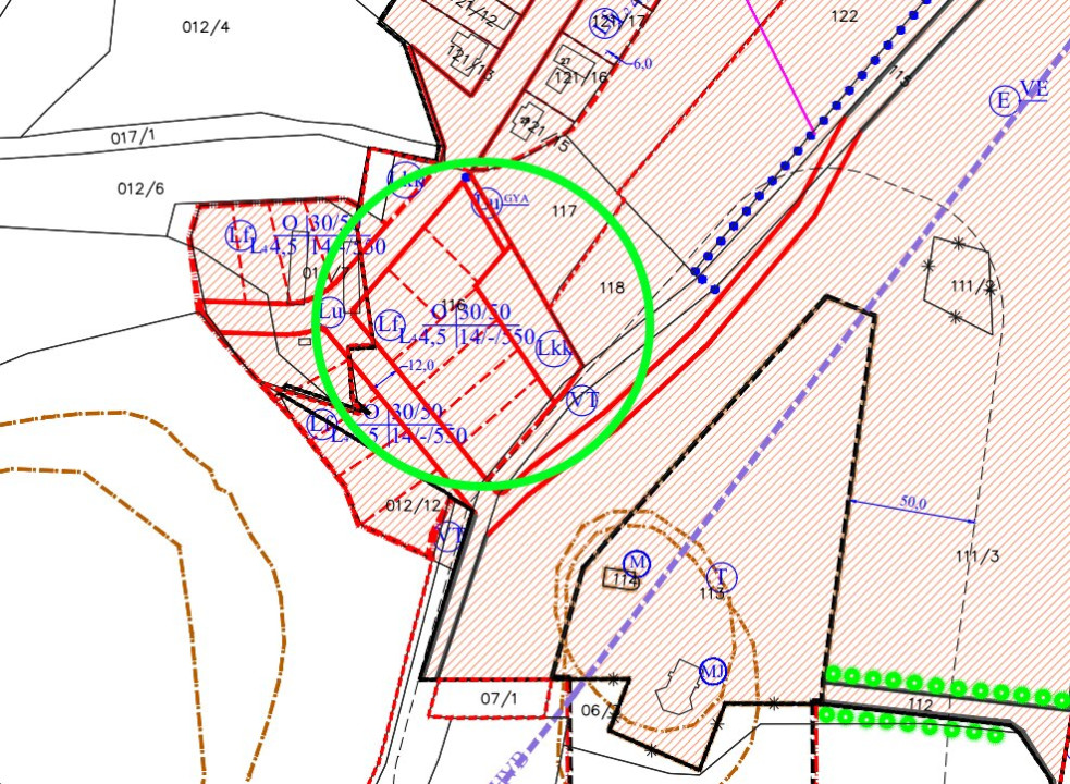 A közműtérkép az ingatlanról és a helyi építési szabályzat a fotók között megtalálható.