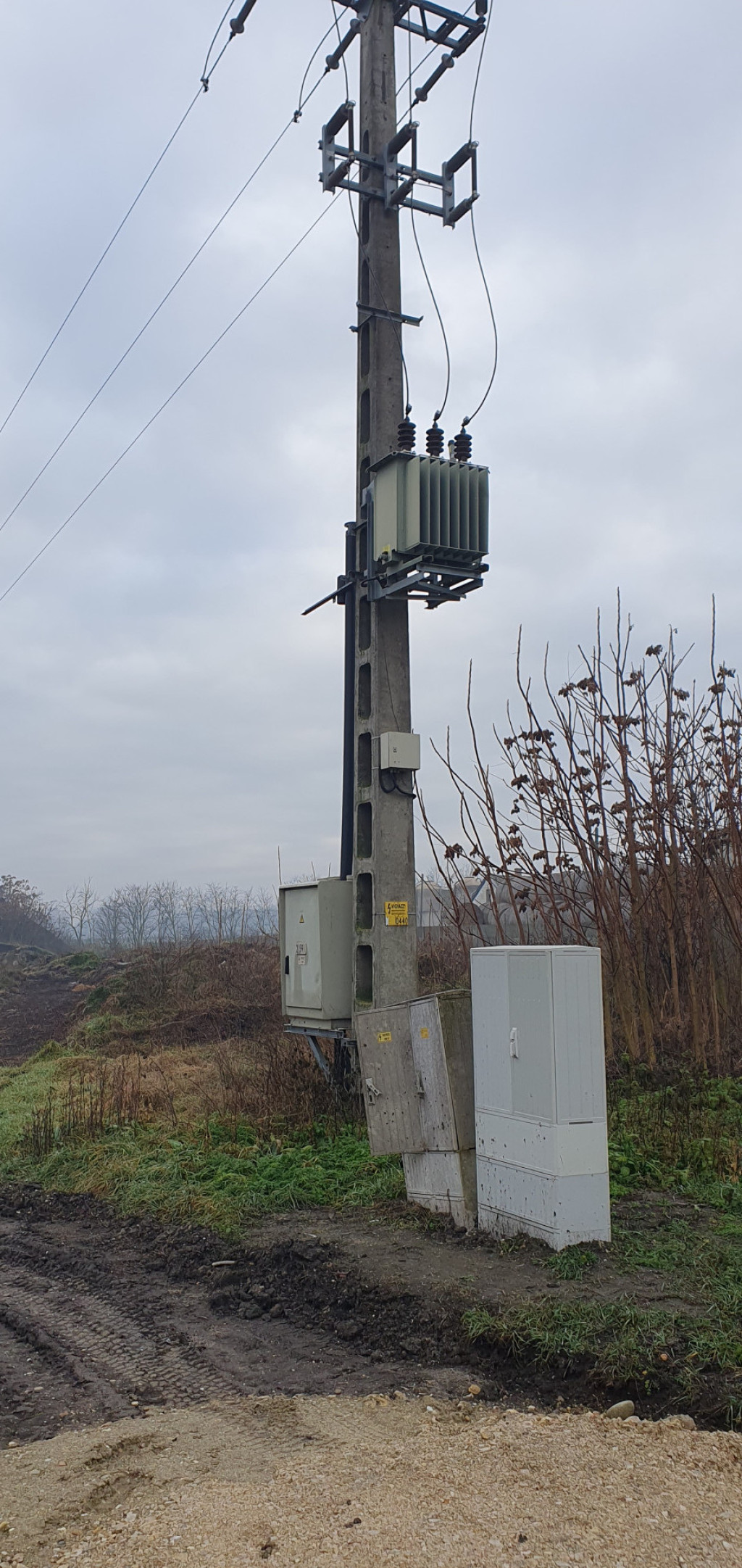 Trafó a telek hátsó sarkától 15 méterre – ingyenesen beviszik az ingatlanra szükség esetén.