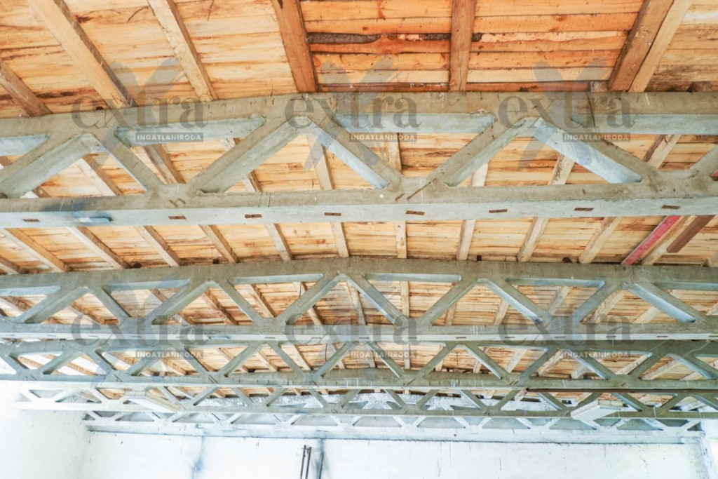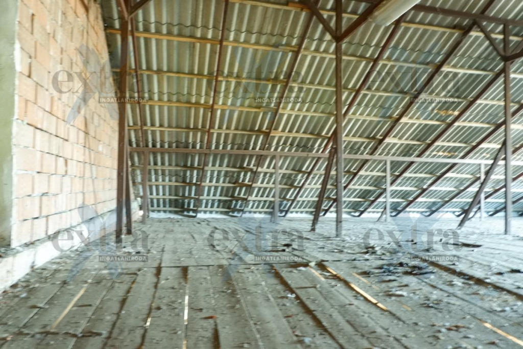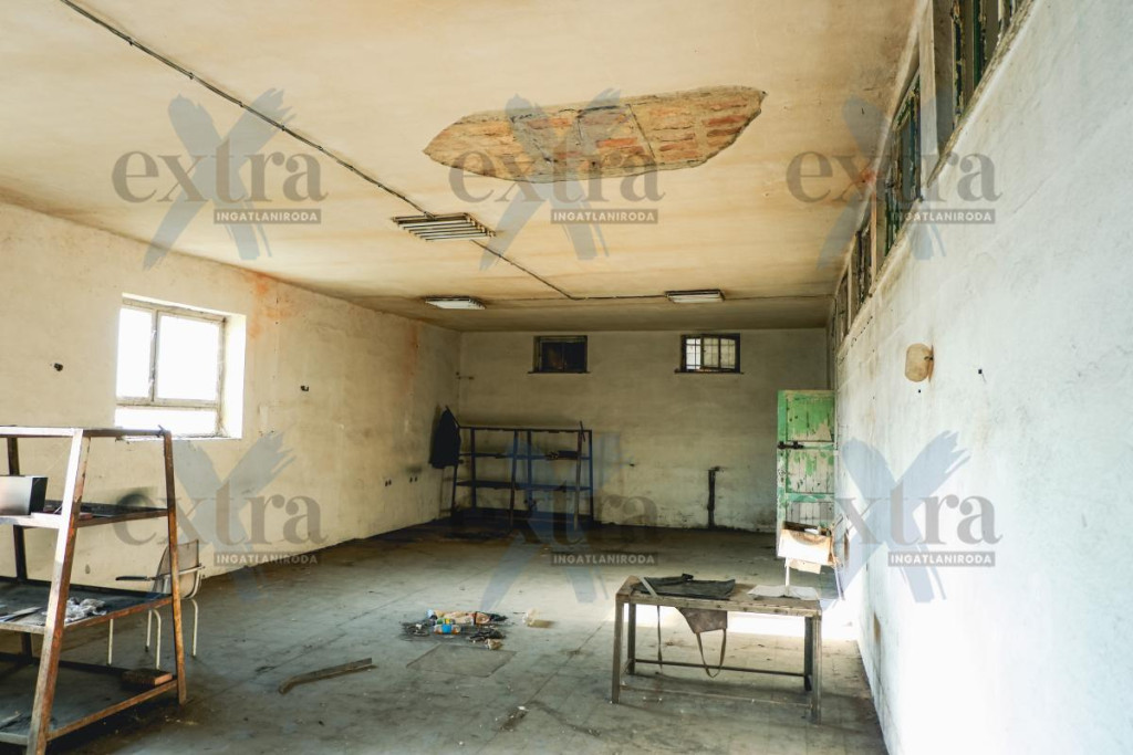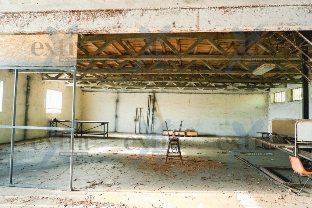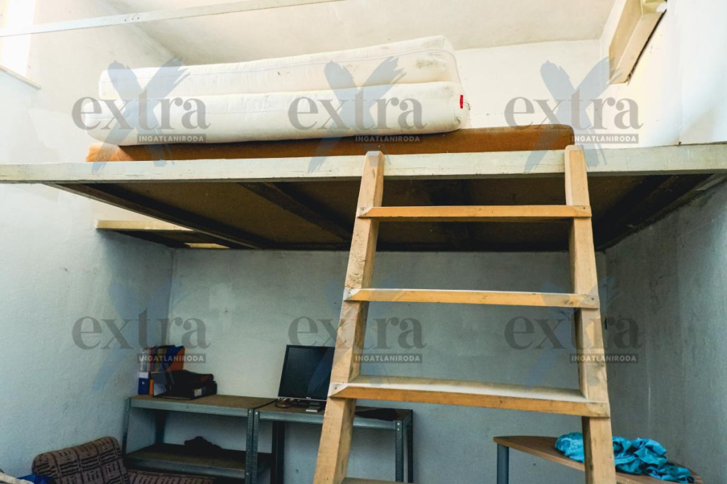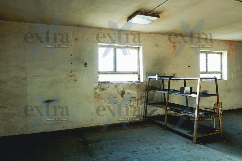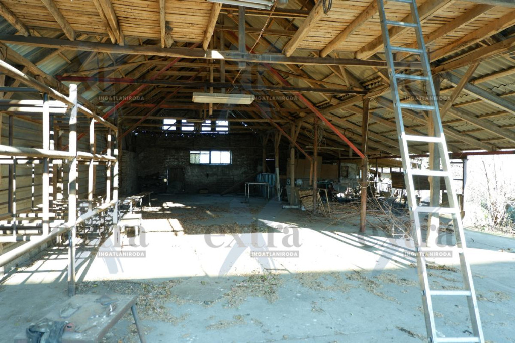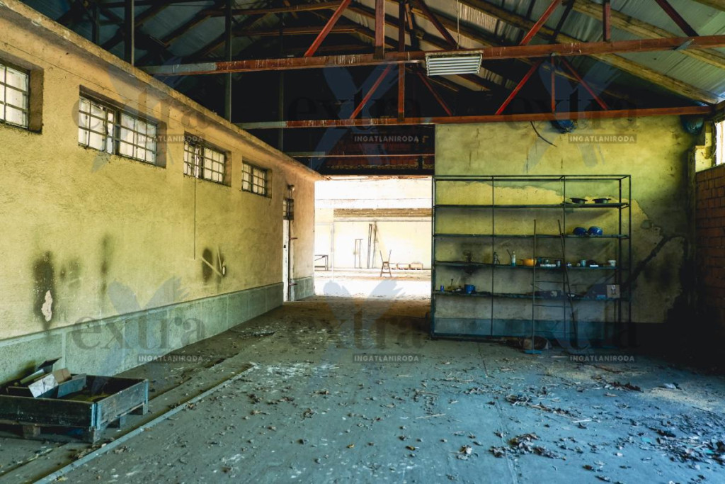 - 466 m2 es csarnok, ami téglából készült és zártszelvény tetőszerkezettel rendelkezik