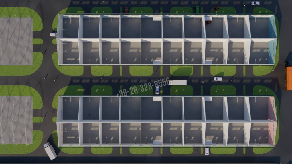 Eladó egy új építésű 116 m2-es csarnok Nagytarcsán, az M0-ás autóút közelében épülő ipari társasházban. A kivitelezés 2024. januárjában indult, és várhatóan 2026 május környékén készül el. Saját használatú parkoló terület, amely 46,4 m2. (albetét homlokzata előtt kb. 5,0 méter mélységben). A műhely alapterülete kb. 9,28 x 12,5 méter, amely 4 méter széles, 2,7 méter magas ipari kapuval és személyi bejáróval lesz felszerelve.Acélvázas tartószerkezettel és szendvicspanel oldal falazattal, valamint tetőpanelekkel rendelkező ipari ingatlan belmagassága 5,3 – 7,8 m. Áram 3x16 Amper. Padozat 3t/m2. Kamionnal az épület minden oldalról körbejárható. A létesítmény területén szinte minden ipari, kereskedelmi és szolgáltató tevékenység végezhető.