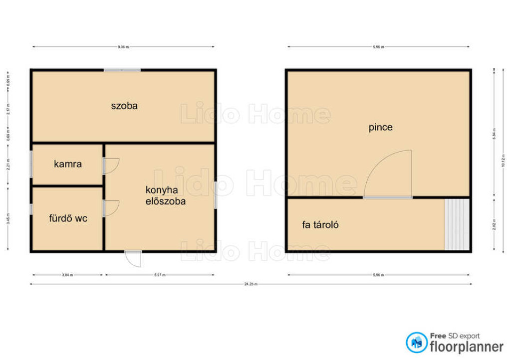 Az ingatlan helyiségei: