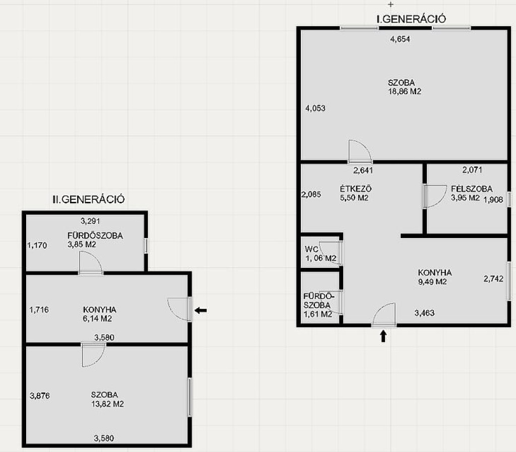 A két épület nincs összeépítve. 10 m2-es tároló tartozik az ingatlanhoz és autóbeálló.