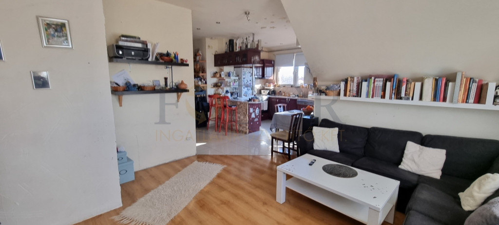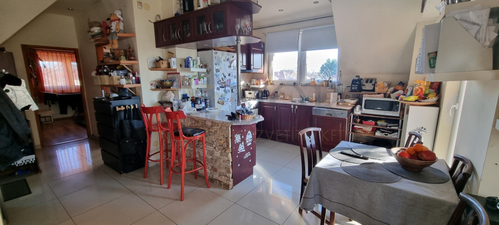 Az emeleti lakásban található egyedi, prémium gépekkel felszerelt konyhabútor a vételár részét képezi.