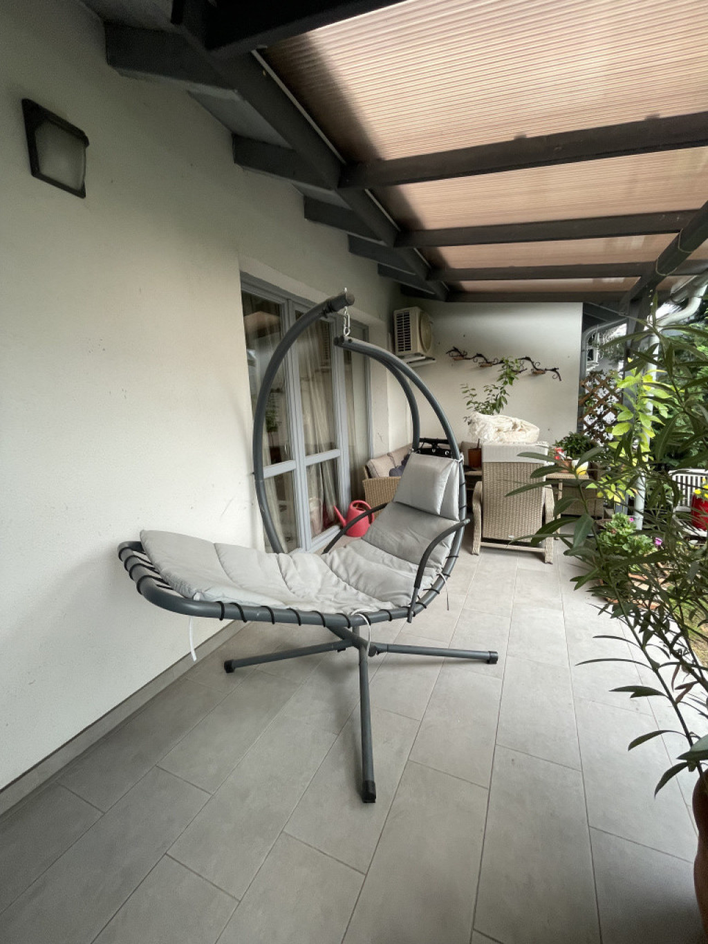 Amerikai konyhás nappali + 2 szoba, fürdőszoba, WC, mosószoba (elektromos kazán, ARISTON villanybojler) -a lakótér átgondolt elosztású, világos és tágas. A nappalihoz közvetlenül kapcsolódik egy 20 m²-es fedett terasz, amely tavasztól őszig a nappali meghosszabbításaként szolgál.