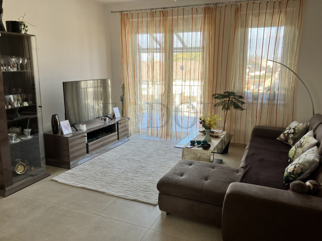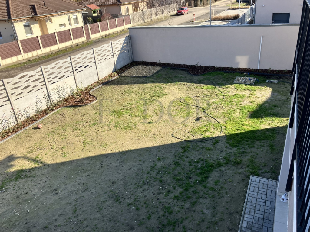 A felső lakóegység hasznos alapterülete 99 m², saját, privát kerttel és kényelmes parkolási lehetőséggel.