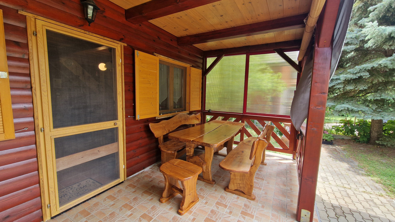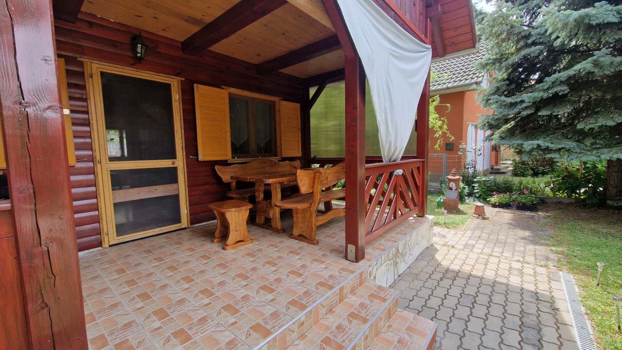 2015-ben épült vörösfenyő gerenda vázra, könnyűszerkezetes, 15 cm-es Dryvit szigeteléssel
