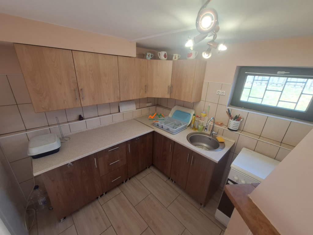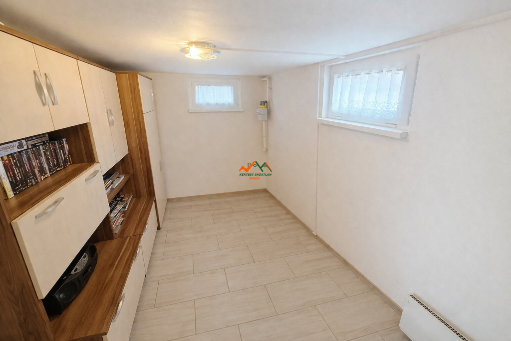 A 309 m²-es telken álló épület a méretéhez képest, jól kihasználható terekkel rendelkezik. Az alsó szint külön bejárattal érhető el, ahol a konyhai rész mellett mosásra vagy tárolásra kialakított helyiségek találhatók. A melegről itt cserépkályha gondoskodik, kiegészítve elektromos fűtéssel. itt még egy alagsori szoba is került kialakitásra vagy bármilyen helyiség lehet