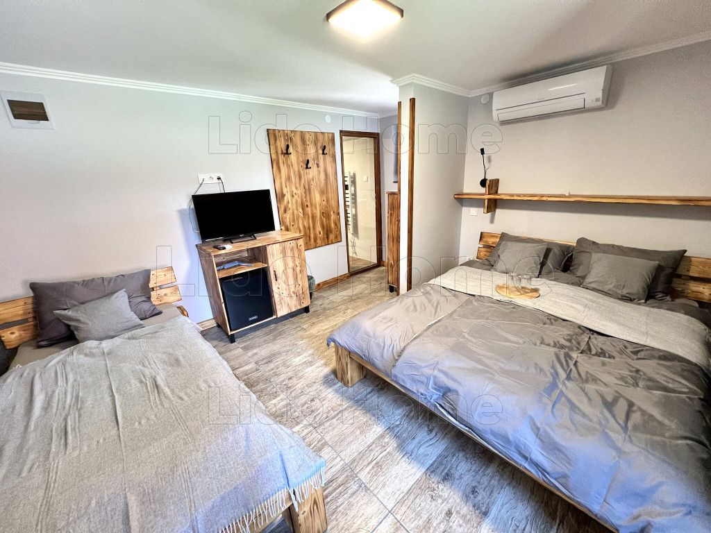 A panzió igényesen kialakított, jól karbantartott épület, amely jelenleg is szálláshelyként üzemel. Az ingatlan2 szinten szintenként 65nm 3db, külön bejáratú lakrész, 5 saját fürdőszobával rendelkező szobával rendelkezik, melyek kialakítása megfelel a mai vendégigényeknek.