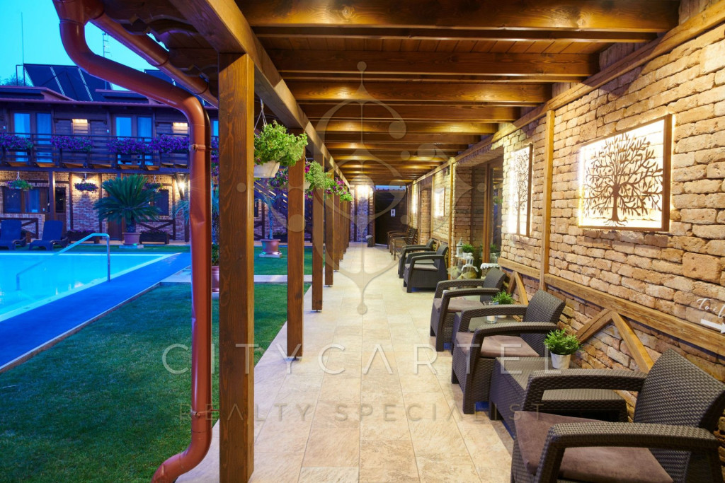 A komplexum négy fő egységre bontható: a kereszteződésben, közvetlenül az utcafronton, a 2016-ban épült, sarok épületben található étterem-bár-wellness-rendezvényterem, a belső telekhatár mellett, a 2016-ban épült, majd 2022-ben bővített, medencére néző, hangulatos, 2 szintes, 9 szobás szálloda, a két épület által közrefogott kb. 100 nm felületű kültéri medence és jacuzzi a fentieket kiszolgáló grill terasszal, valamint a külön utcai bejárattal elérhető, tenisz- és futball pályának alkalmas sportpálya és lelátó.