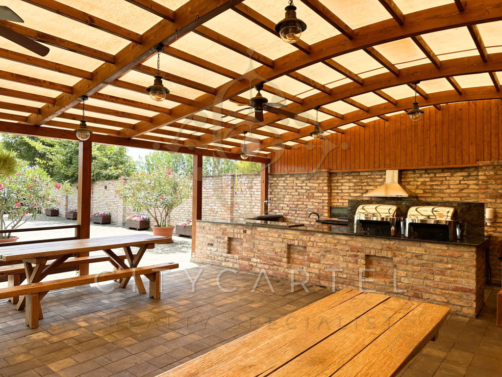 A grill terasz a nyári időszakban 10-30 fős rendezvényeknek ad otthont, ahol a kinti grill konyha teljes felszereltséggel rendelkezik, így akár bográcsozásra is van lehetőség. A kinti szórakozási lehetőségek között található a medence, jakuzzi, kivilágított műfüves sportpálya, ping pong asztal és egy kis játszótér a kisebb gyerekek számára.